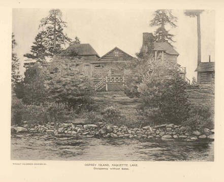 Osprey was originally known as Murray’s Island, after the Rev. William “Adirondack” Murray who settled on Osprey during the summers of 1867-1869 and published a book extolling the beauty and restorative airs of the Adirondacks.2 The island also attracted the guide and hermit, Alvah Dunning (1816-1902) who took over Murray’s camps and made his home on Osprey for 10 years.
