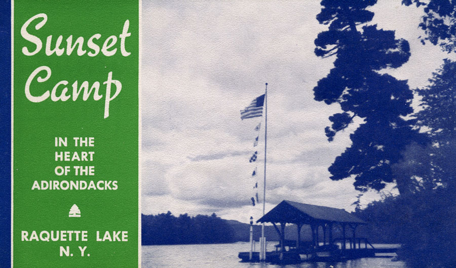 Sunset Camp was built in 1895 by Richard V. Bennett (1875?-1924) on Woods Point, on the other side of the peninsula from what is now the Raquette Lake Boys Camp. Dick was the younger half-brother of Ed and Charlie who settled on the lake in 1878, each of whom built successful hotels.